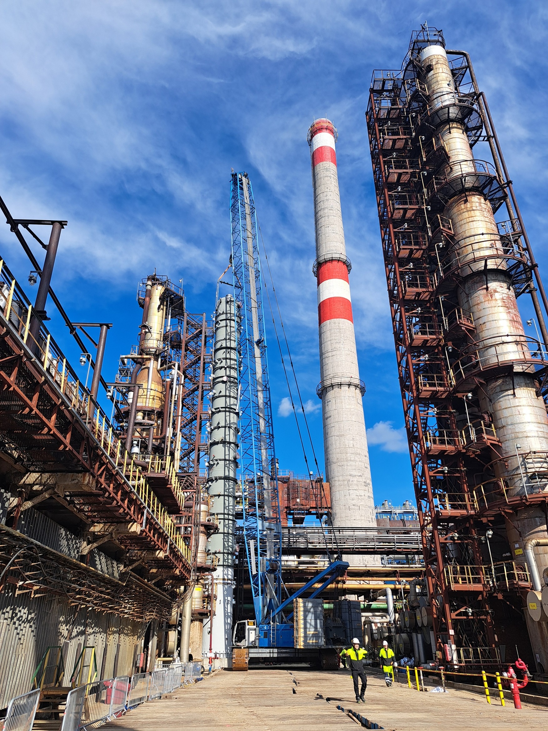 The key part of the project was the installation of the 40-meter-high, 100-tonne K101 unit in the middle of an operating plant. The location presented extraordinary challenges: confined spaces with clearances of just a few dozen centimeters, live equipment operating nearby, and a hazardous environment requiring strict safety controls. These conditions made accurate engineering and meticulous planning indispensable.