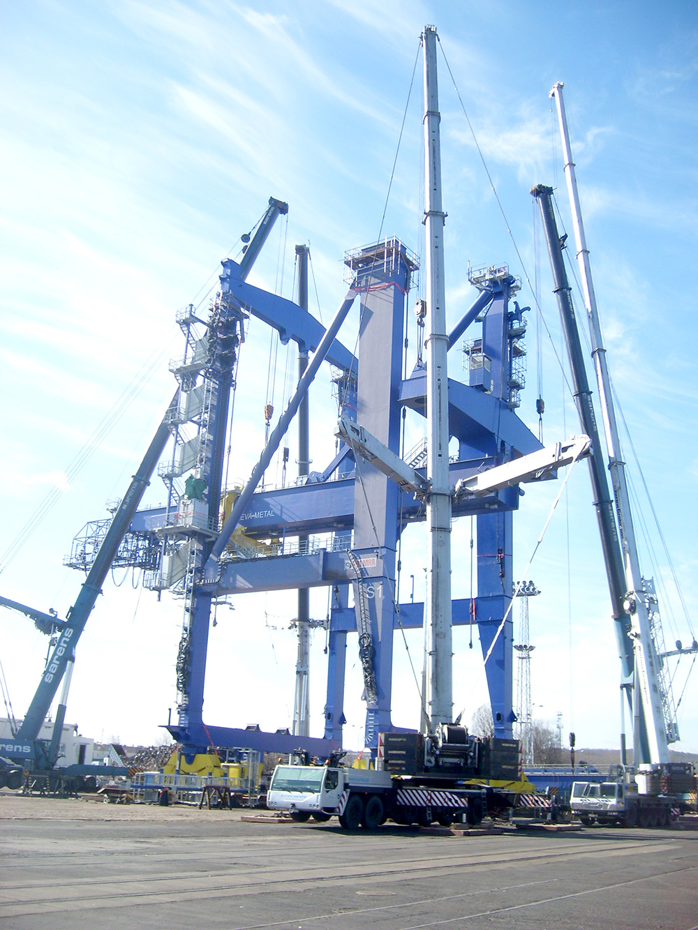 Beams weighing 230t were lifted by four cranes. This was the heaviest part of the harbour crane.