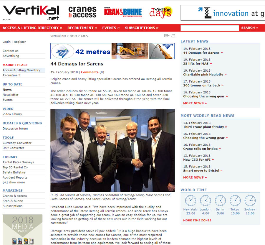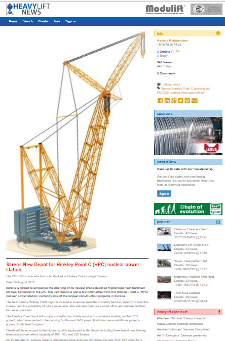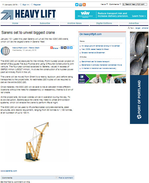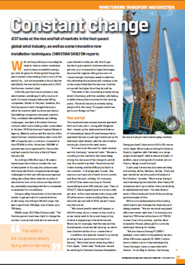 Sarens features on an article titled "Spin Doctor" in the December issue of International Cranes and Specialized Transport Magazine