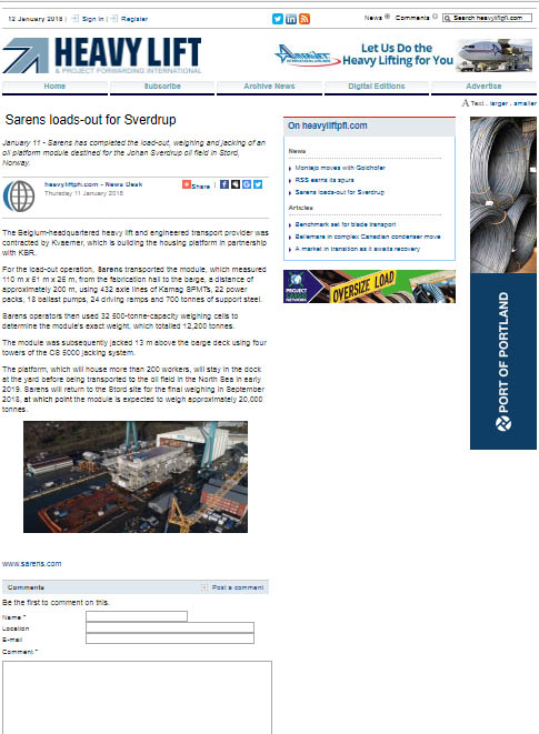 Sarens Features on the Cover and in the Articles of the December Issue of International Cranes and Specialized Transport Magazine