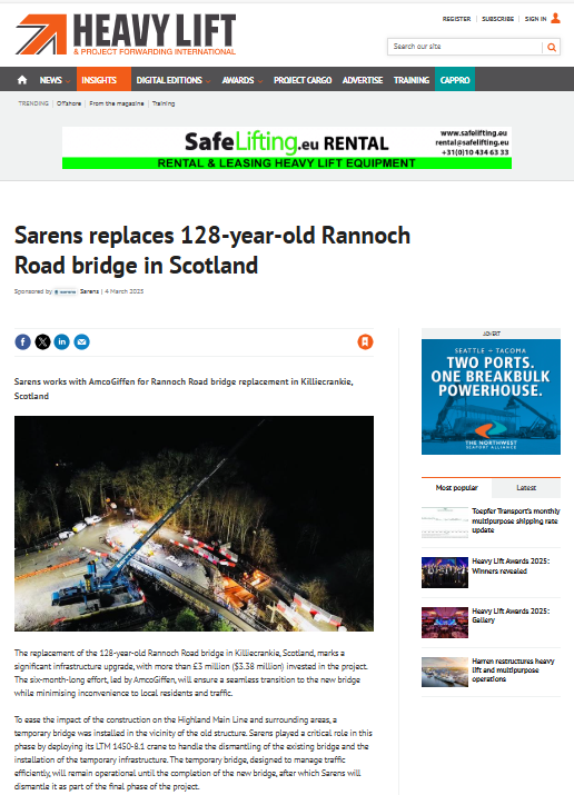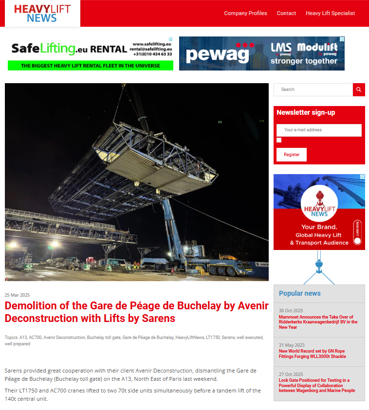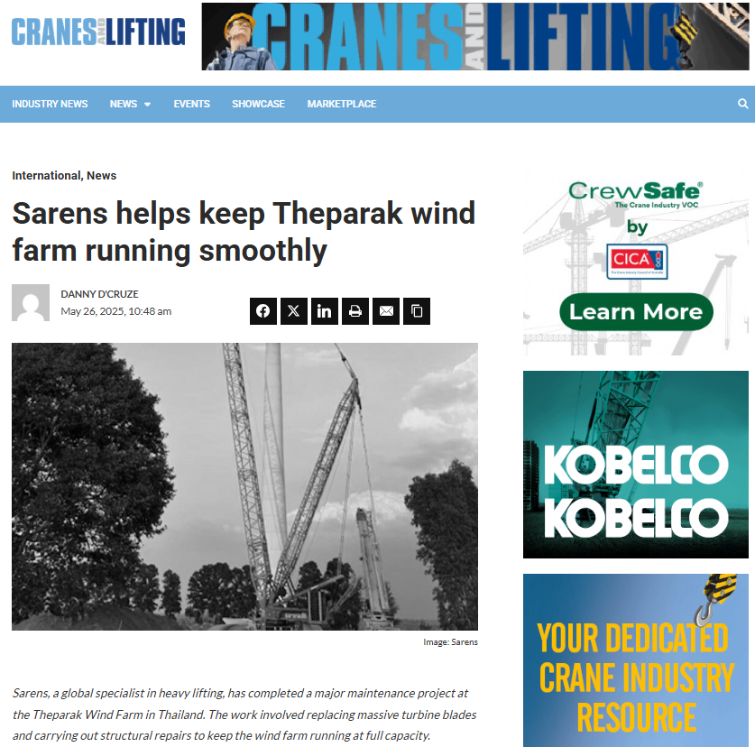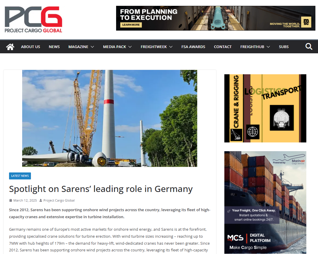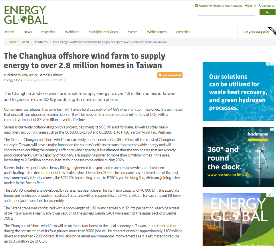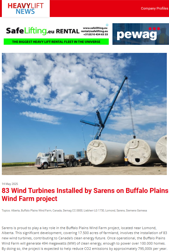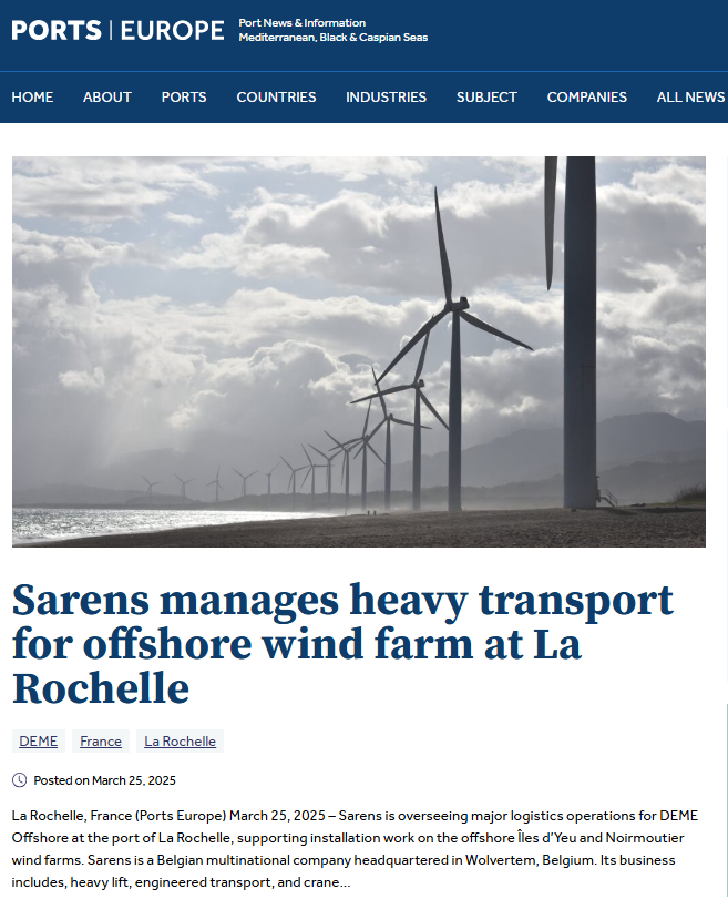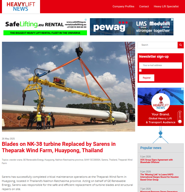 Sarens contributes to achieving the goal of 12.9% wind power capacity in Mexico by participating in the unloading of 64 wind turbines in Baja California Norte