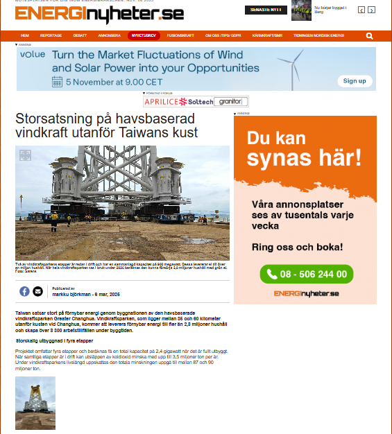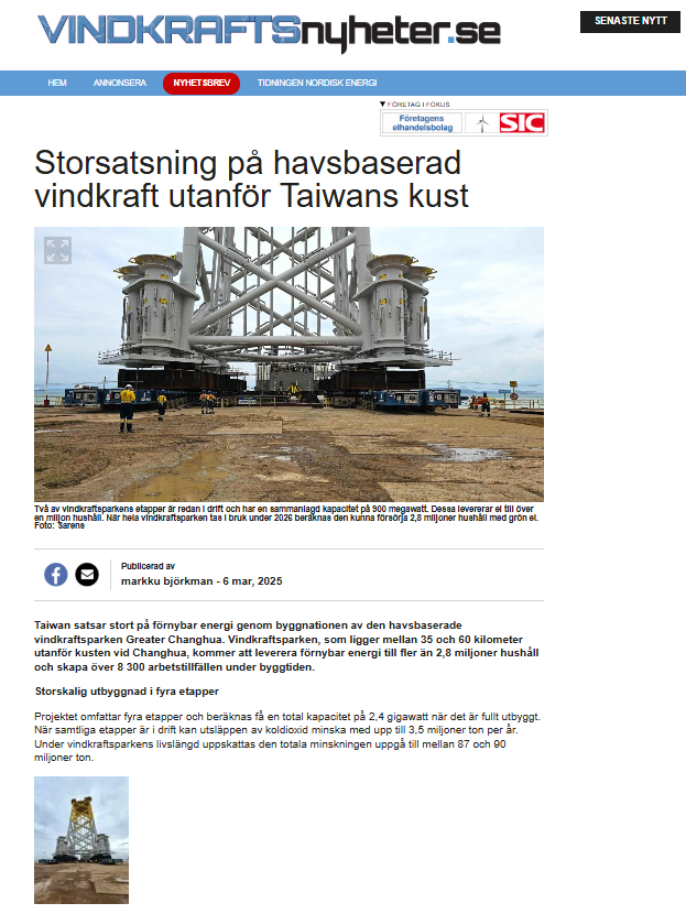 Changhua offshore windfarm will supply renewable energy to more than 2.8 million households in Taiwan
