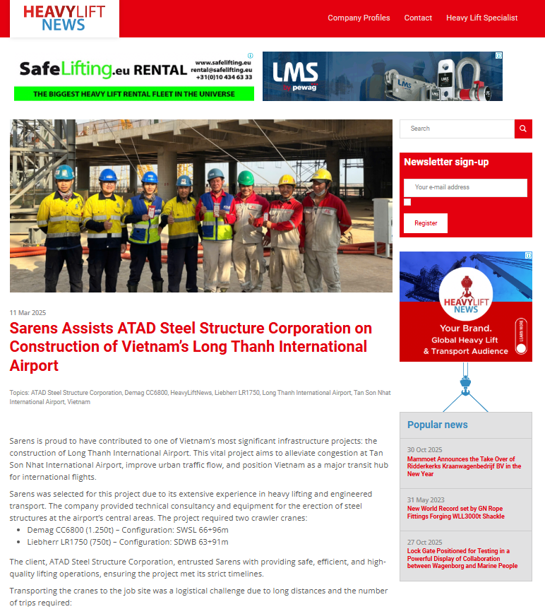 Sarens Assists ATAD Steel Structure Corporation on Construction of Vietnam’s Long Thanh International Airport