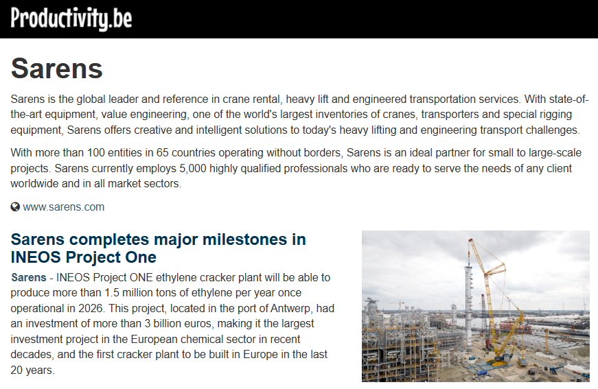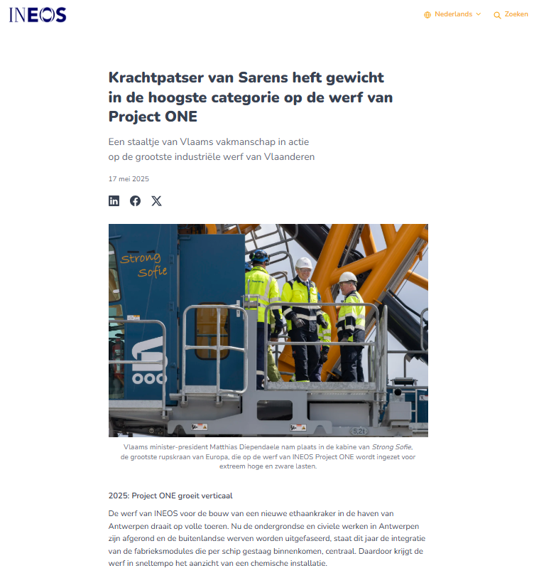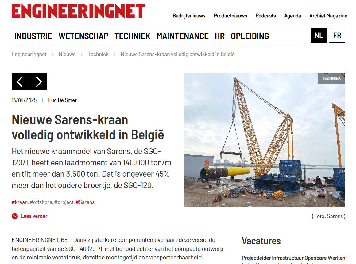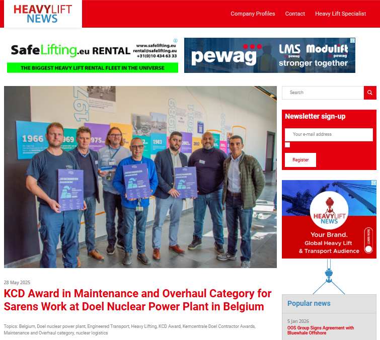 KCD Award in Maintenance and Overhaul Category for Sarens Work at Doel Nuclear Power Plant in Belgium