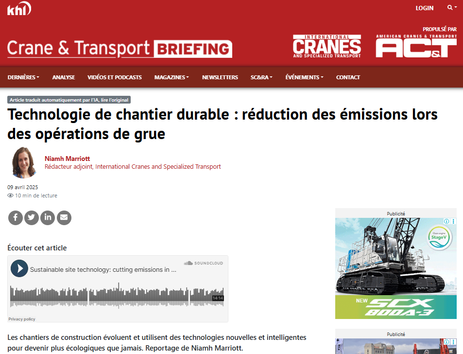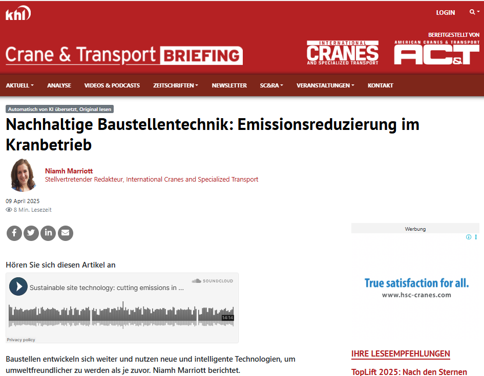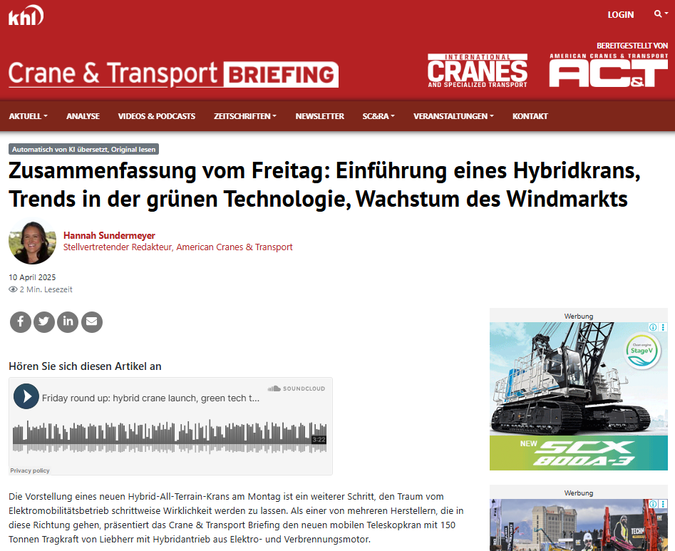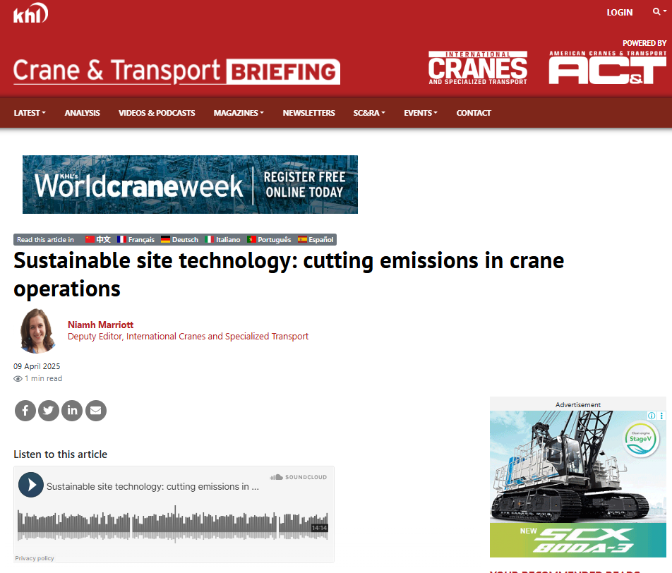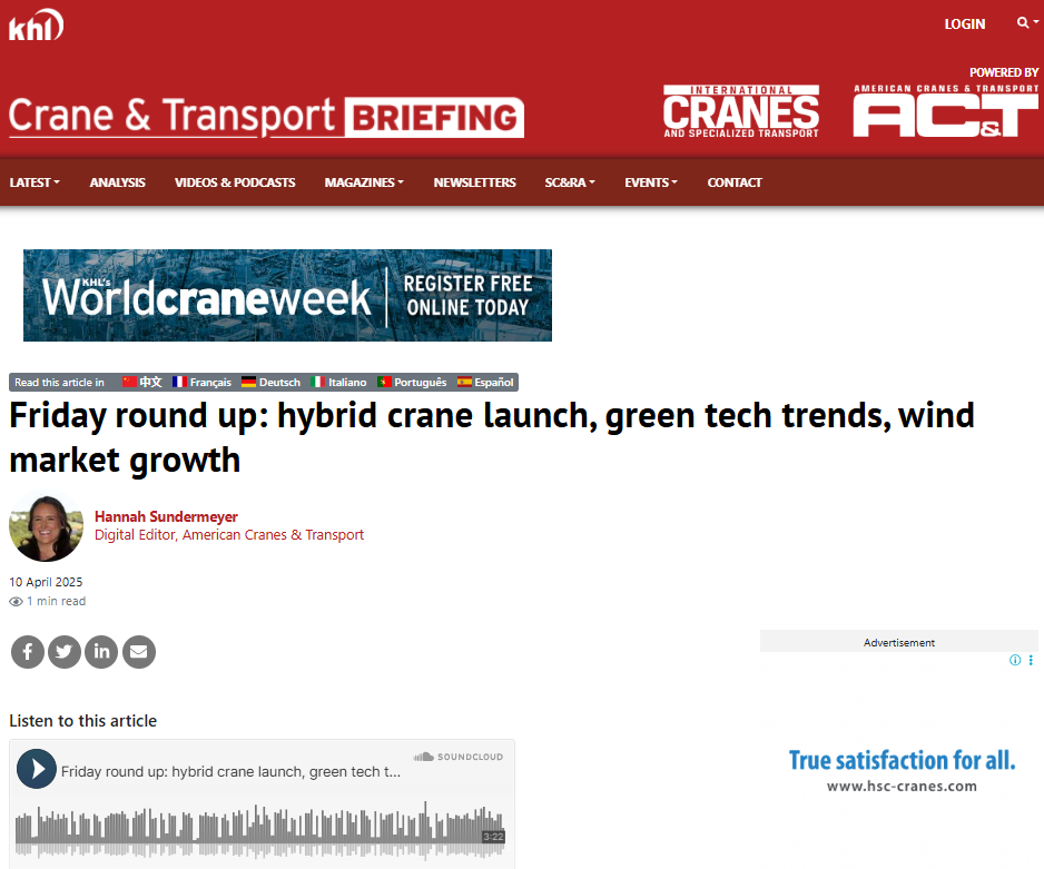 Friday's summary: Introduction of a hybrid crane, trends in green technology, growth of the wind market