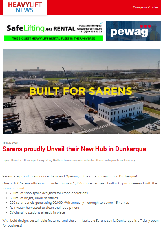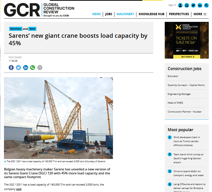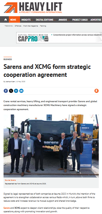XCMG and Sarens are collaborating to drive innovation in the heavy lifting sector and are delivering the first batch of advanced cranes