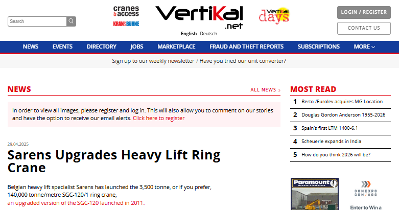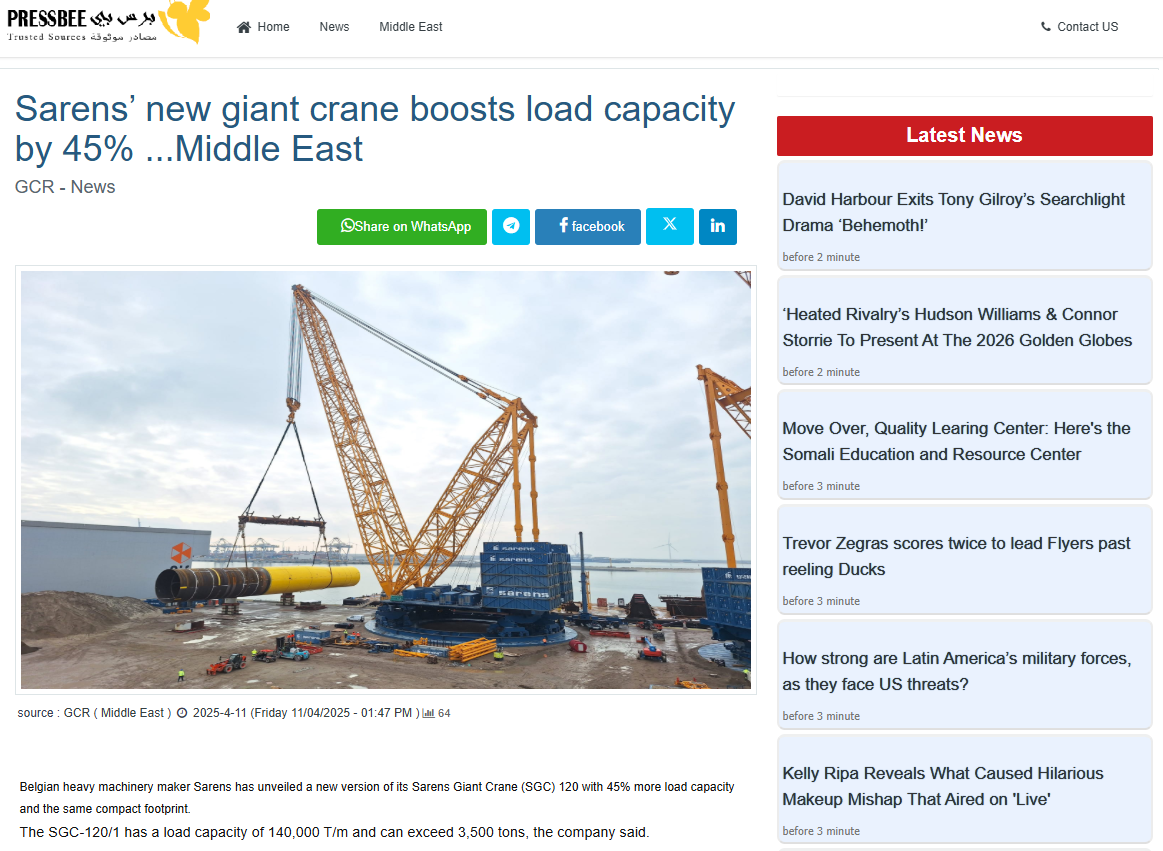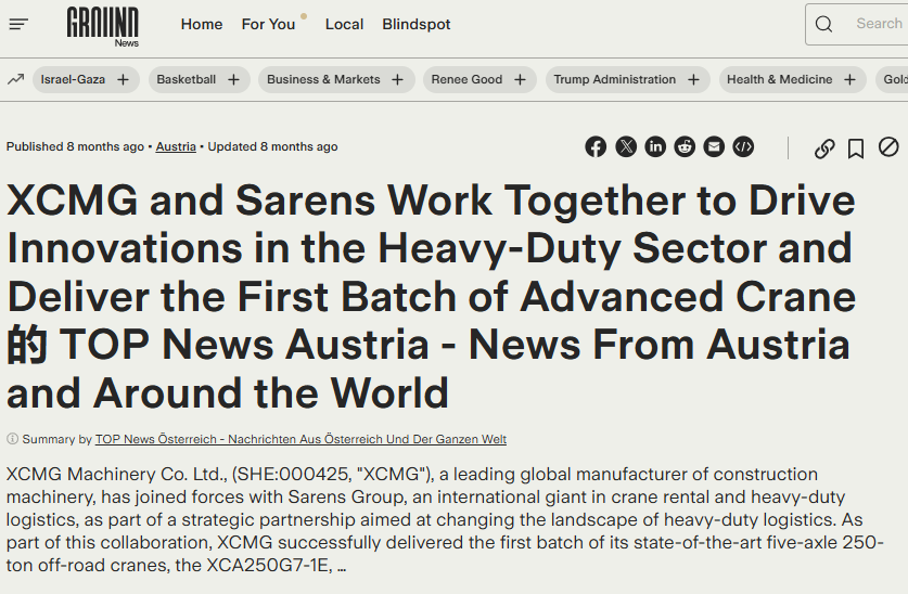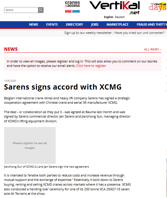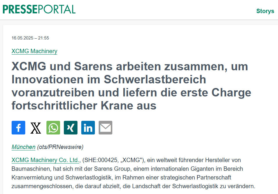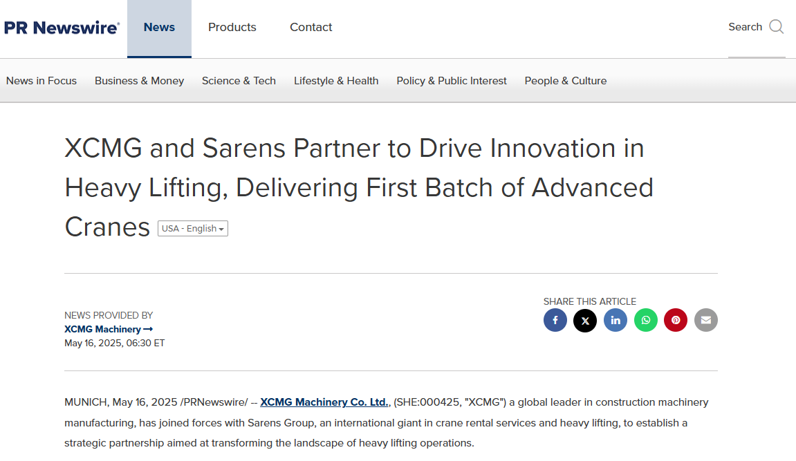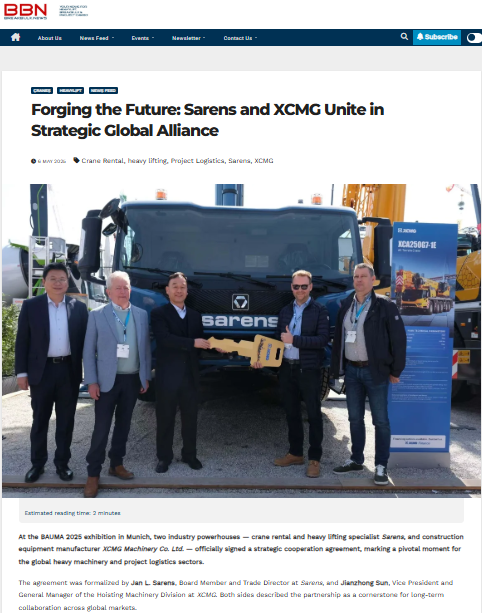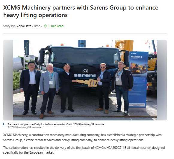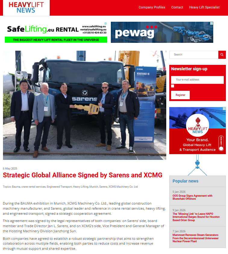 XCMG and Sarens Partner to Drive Innovation in Heavy Lifting, Delivering First Batch of Advanced Cranes