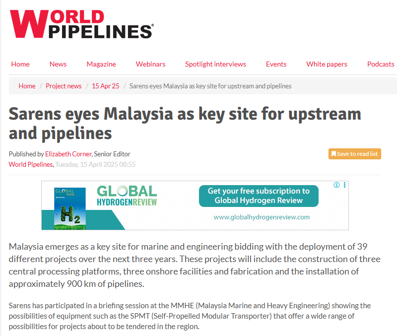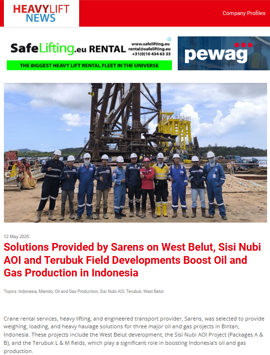 Solutions Provided by Sarens on West Belut, Sisi Nubi AOI and Terubuk Field Developments Boost Oil and Gas Production in Indonesia