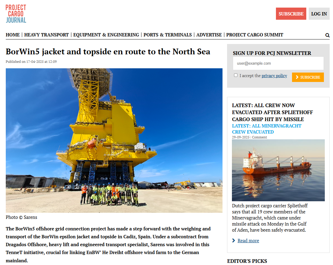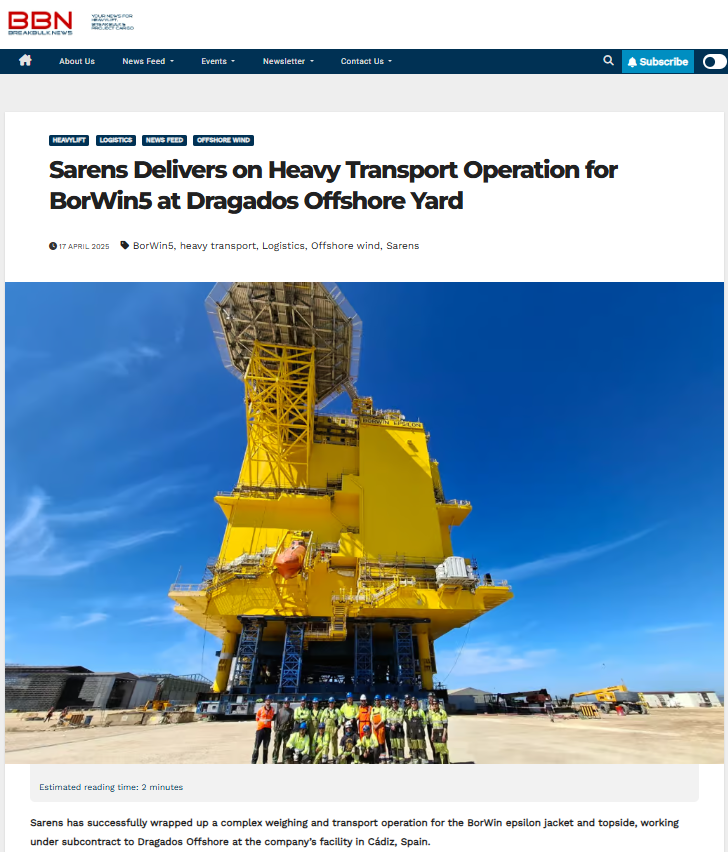BorWin epsilon Jacket and Topside Weighed and Transported by Sarens Subcontracted by Dragados Offshore in Cadiz, Spain