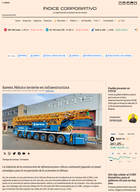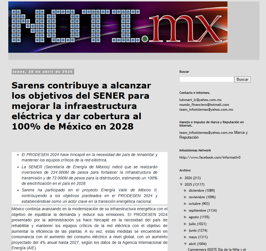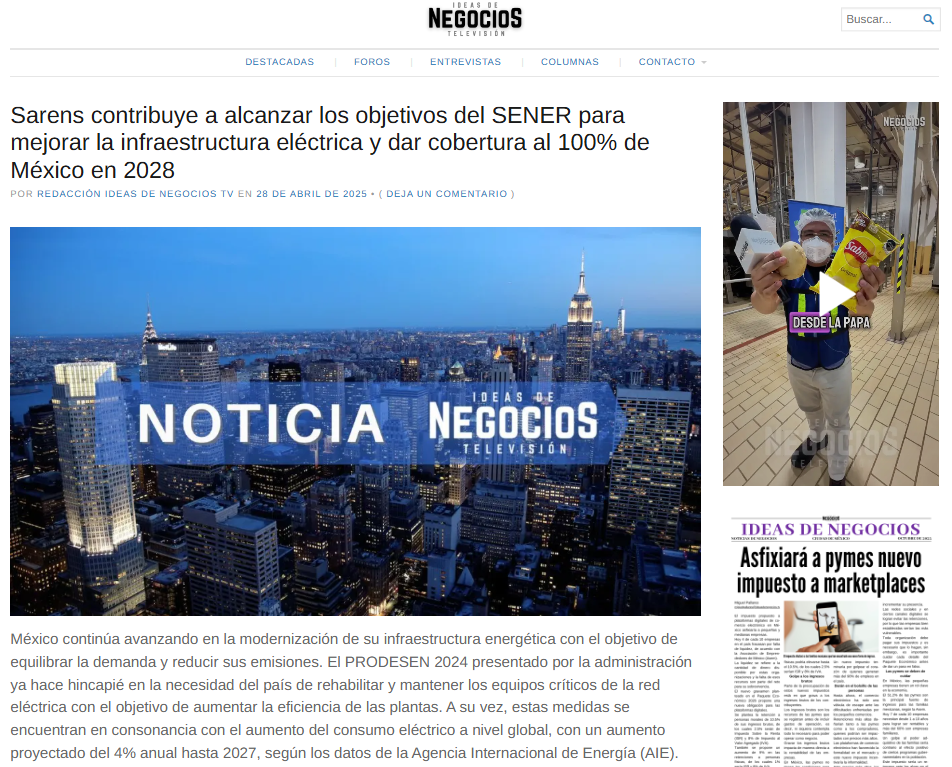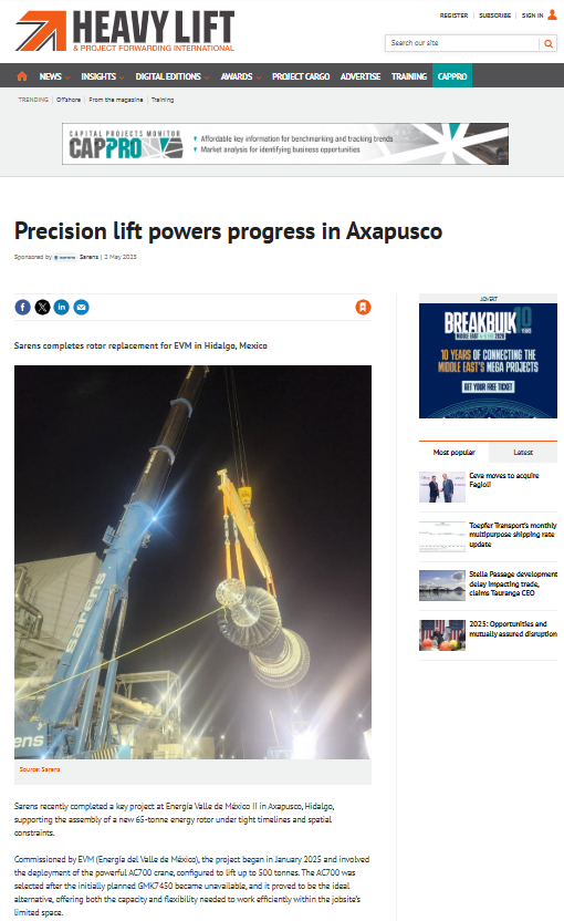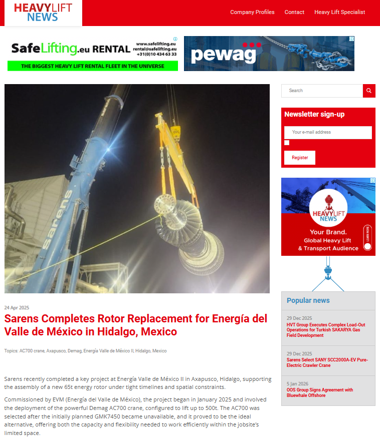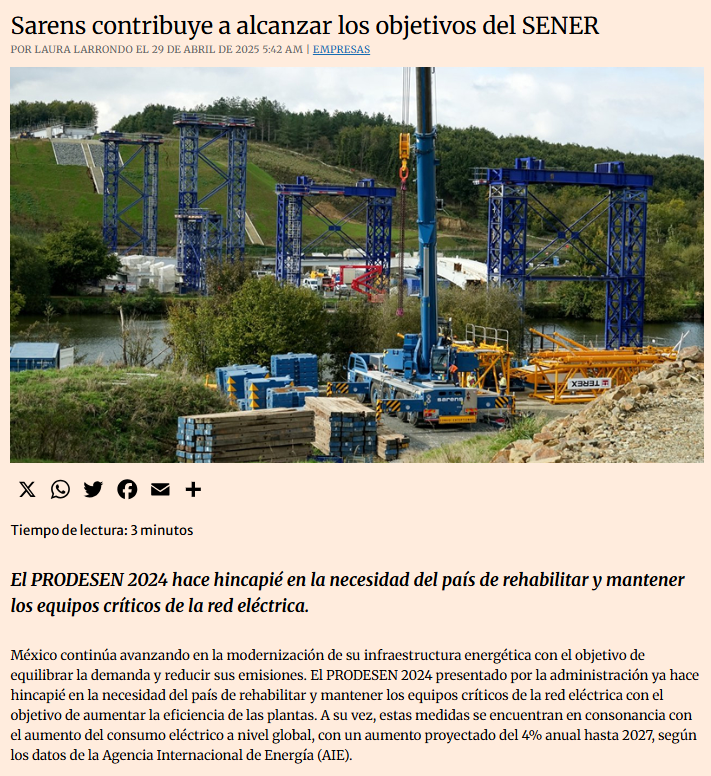 Sarens contributes to achieving SENER's objectives to improve the electrical infrastructure and provide 100% coverage to Mexico by 2028