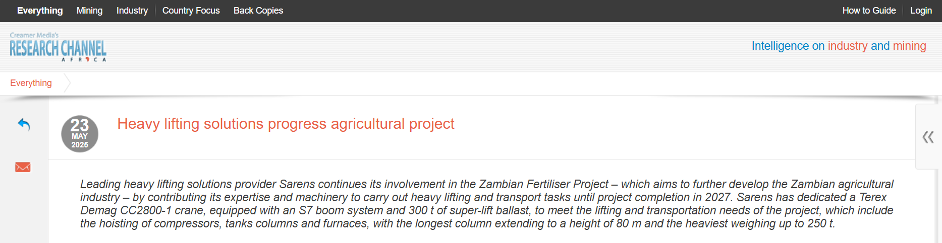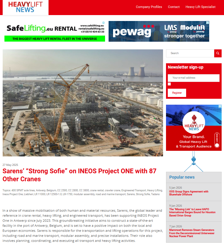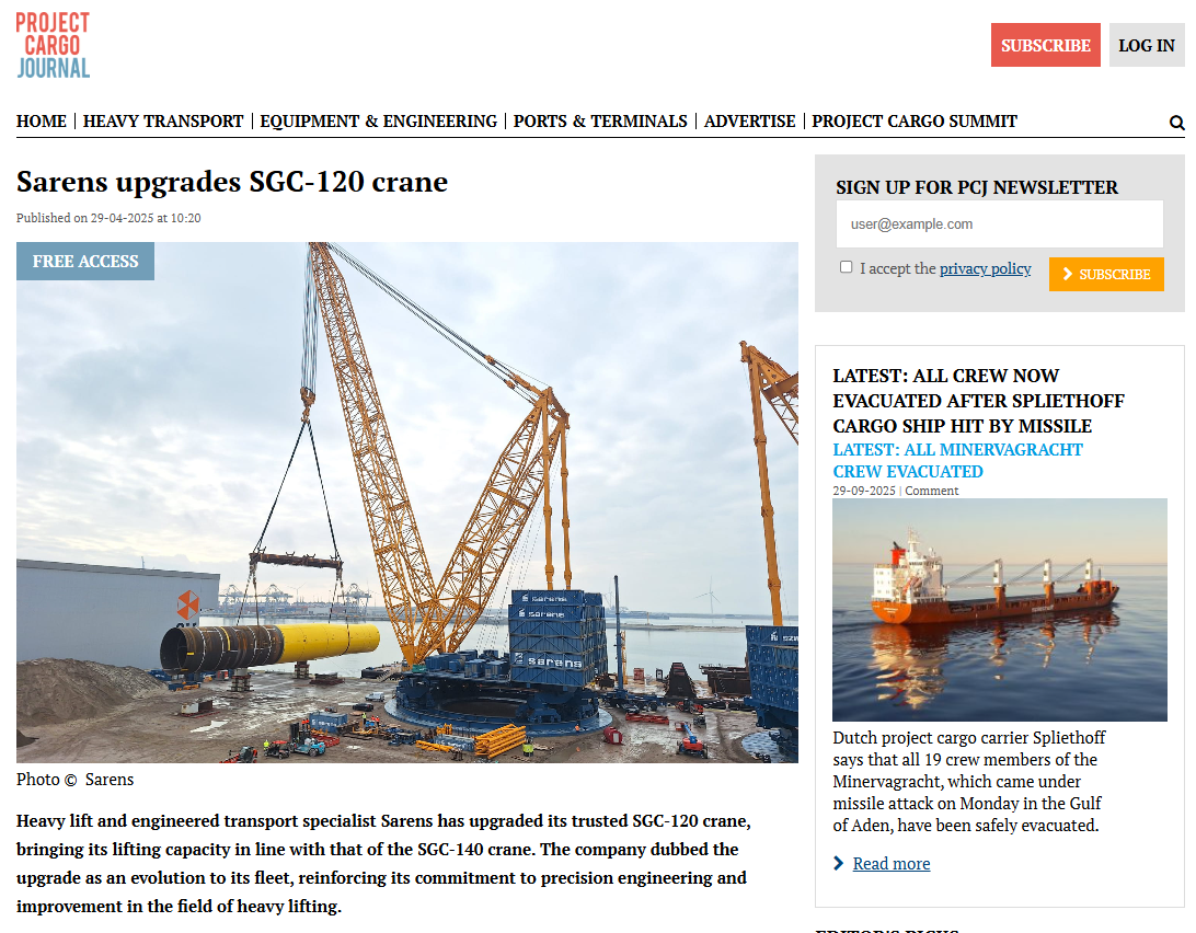 Sarens asks for entities in Australia to commit to port infrastructure renovations for wind industry