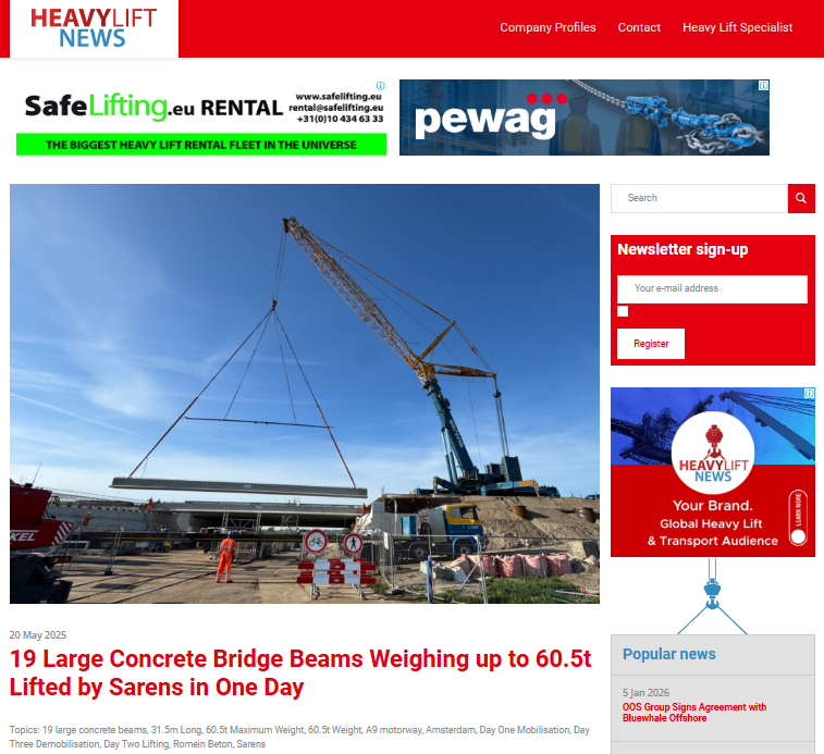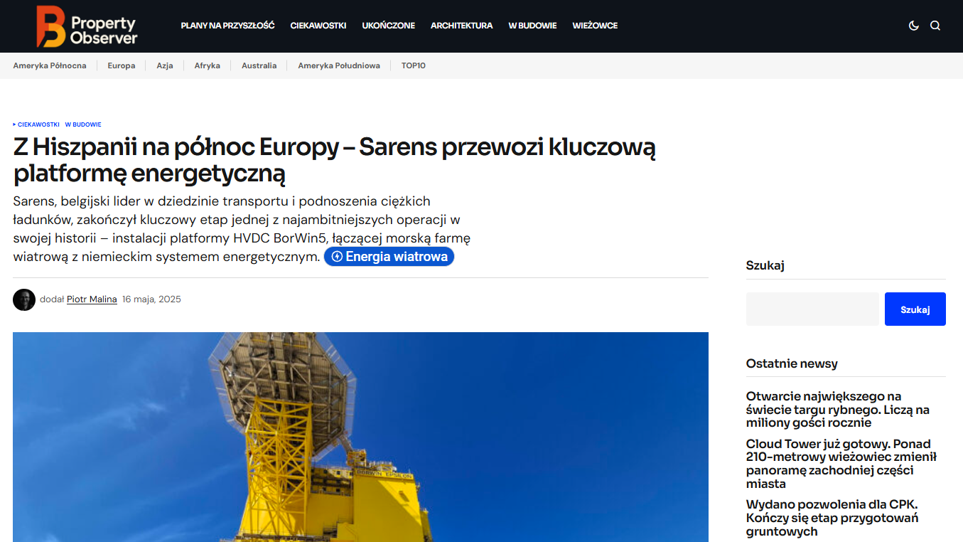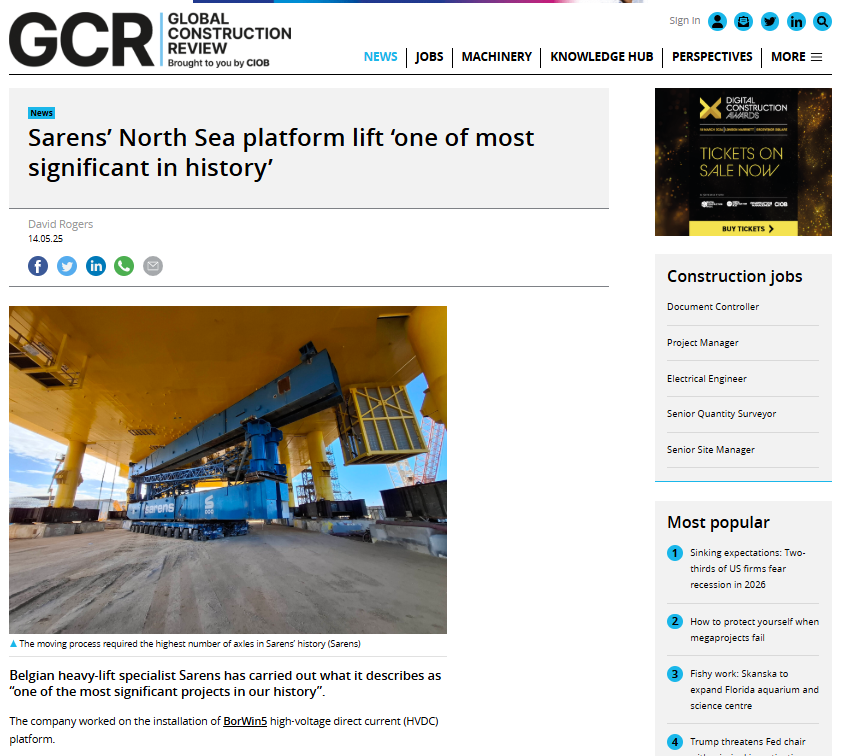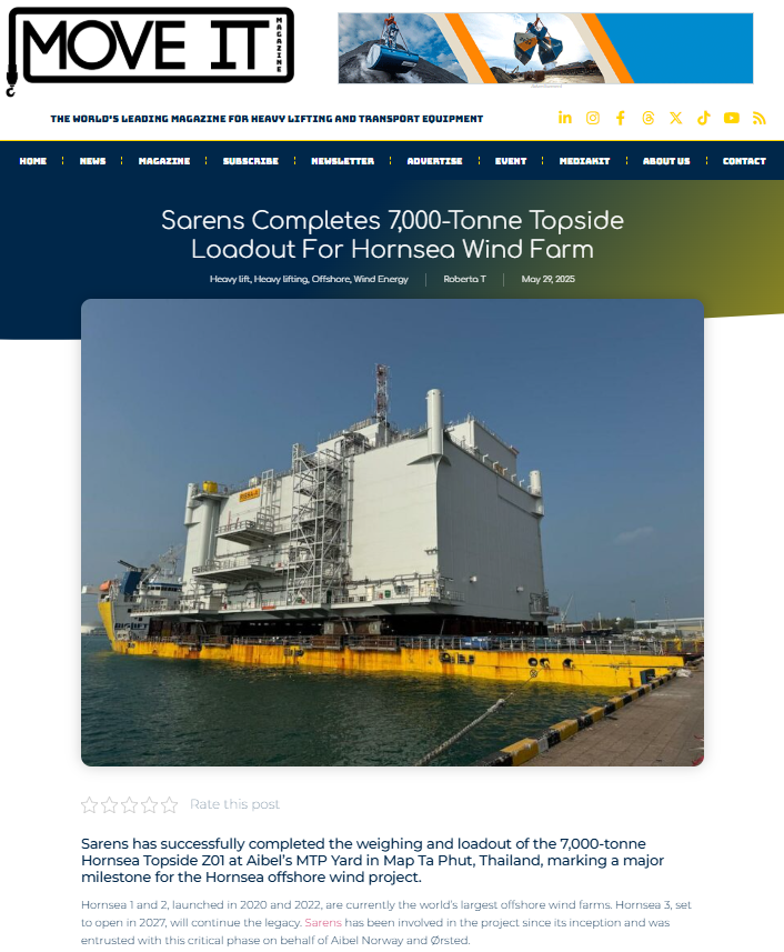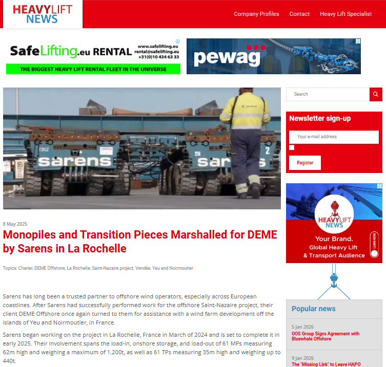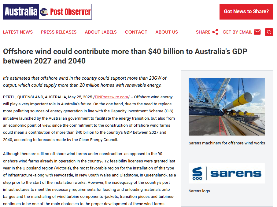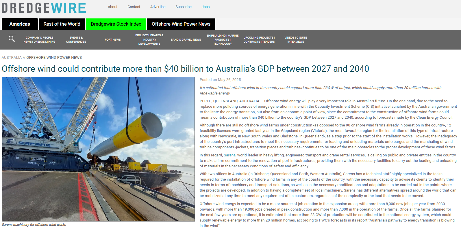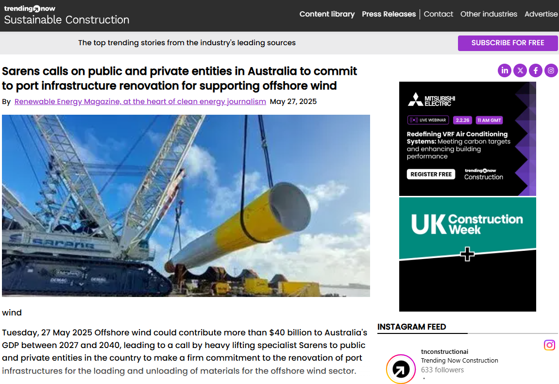 Sarens calls on public and private entities in Australia to commit to port infrastructure renovation for supporting offshore wind