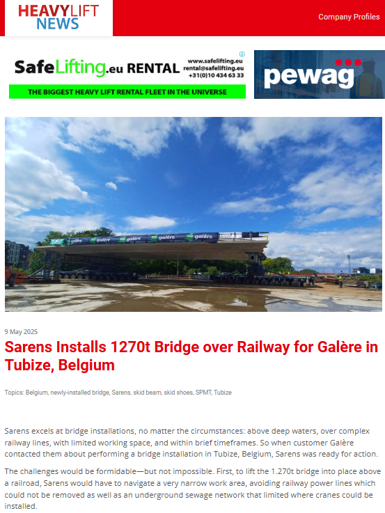 Sarens’ custom-designed solution supports bridge replacement at Bettembourg train station in Luxembourg