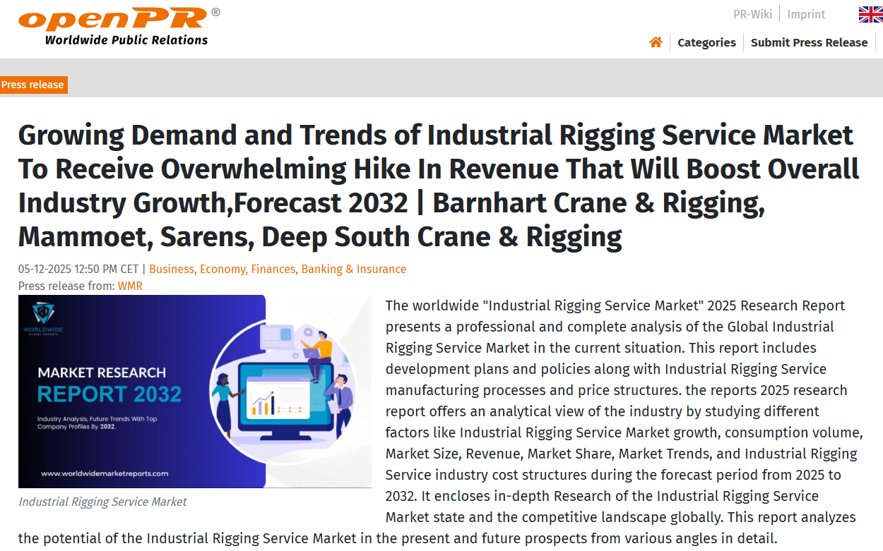 Growing Demand and Trends of Industrial Rigging Service Market To Receive Overwhelming Hike In Revenue That Will Boost Overall Industry Growth, Forecast 2032