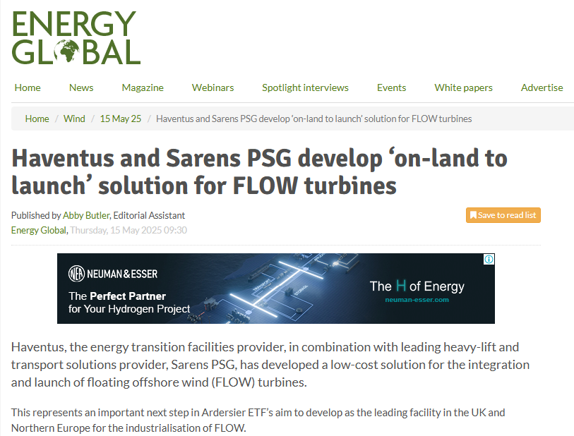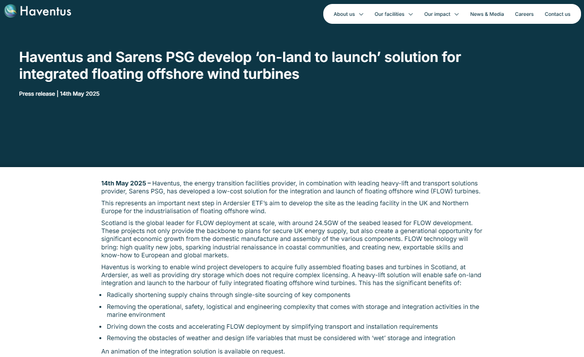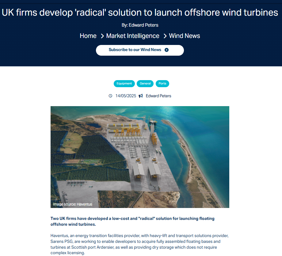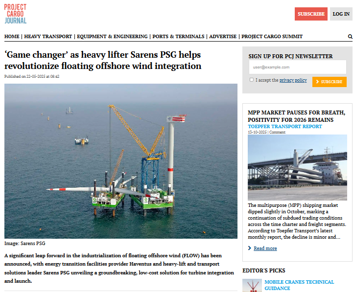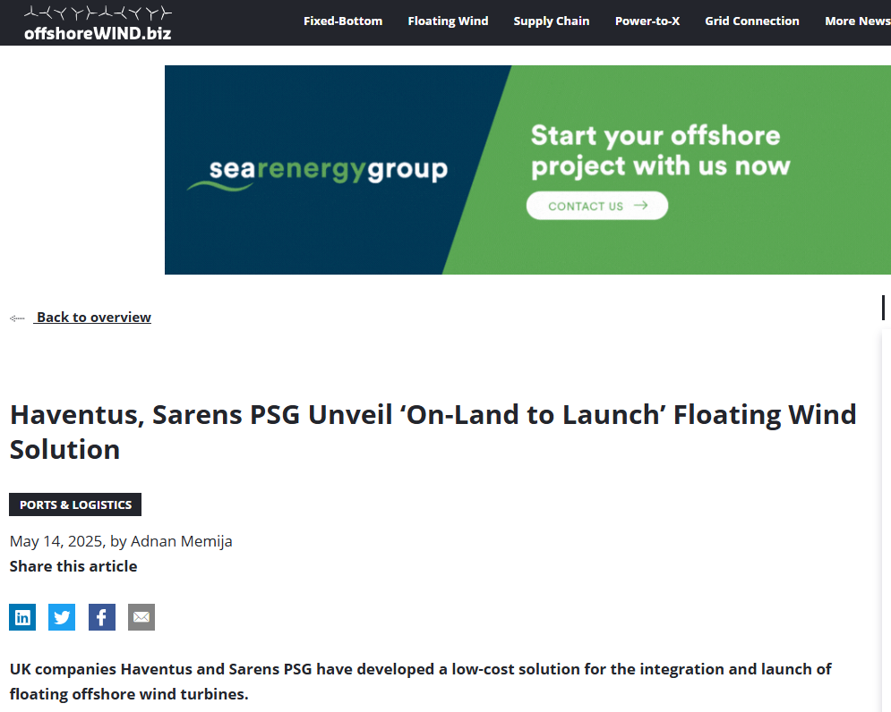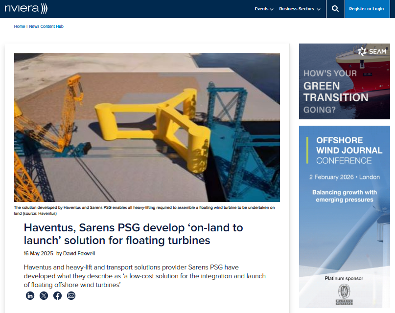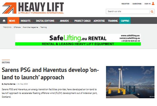Haventus and Sarens PSG develop ‘on-land to launch’ solution for integrated floating offshore wind turbines