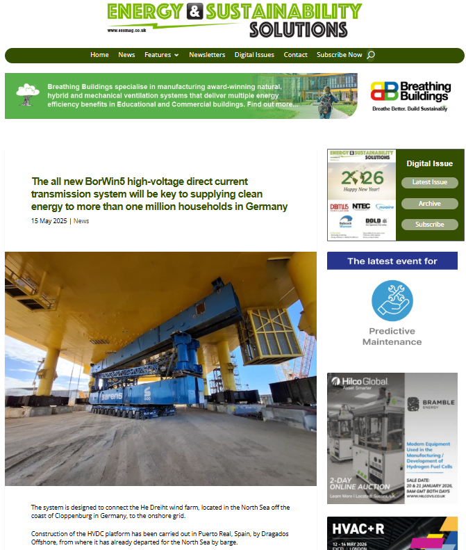 The all new BorWin5 high-voltage direct current transmission system will be key to supplying clean energy to more than one million households in Germany