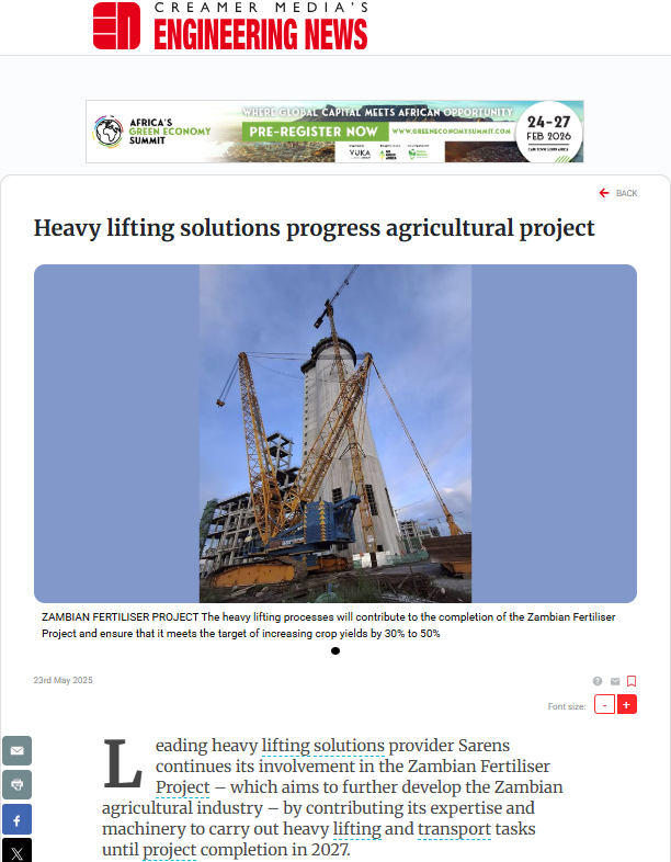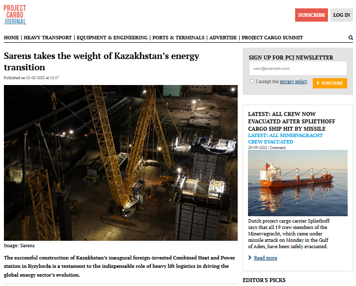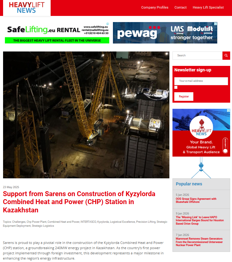 Support from Sarens on Construction of Kyzylorda Combined Heat and Power (CHP) Station in Kazakhstan