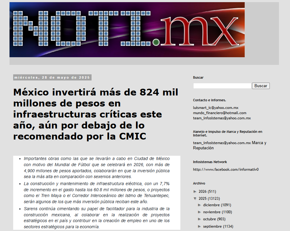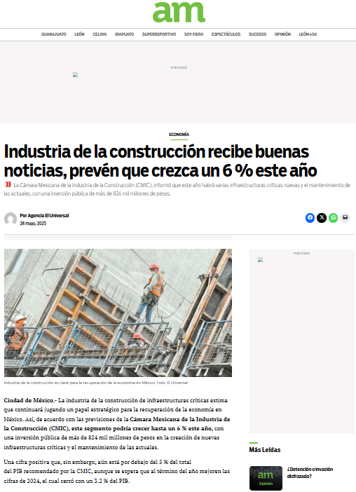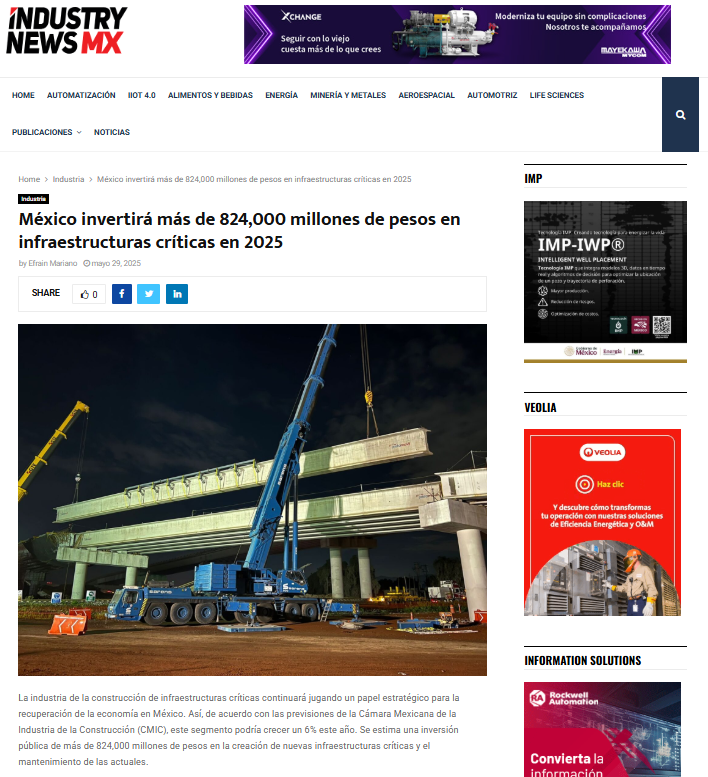 Mexico will invest more than 824 billion pesos in critical infrastructure this year, still below the amount recommended by the CMIC.